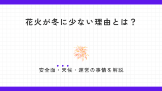 夏の夜空を彩る花火。日本では「花火=夏」というイメージがありますよね。そのため、「どうして冬には花火をしないの?」「冬のほうが空気がきれいなのに、なぜ?」と疑問に思ったことがある方も多いのではないでしょうか。実は、花火が冬に少ないのにはきち...