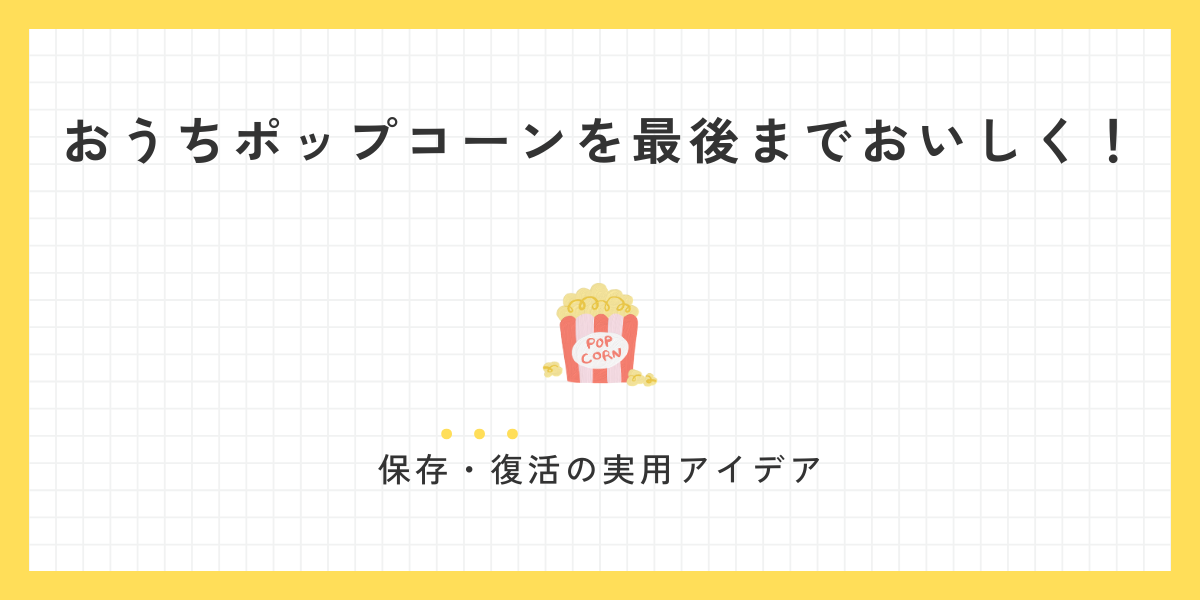 ここではポップコーンを長く楽しむための保存方法と、しんなりしたときの復活アイデアをやさしくまとめました。