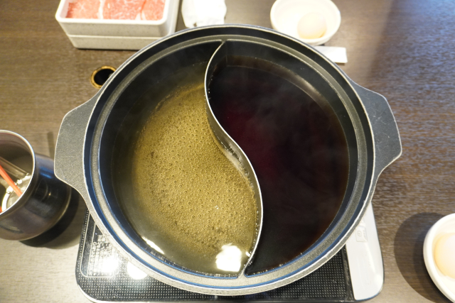 たとえば、鴛鴦(おしどり)鍋のように、左右でまったく異なるスープを入れることが可能です。