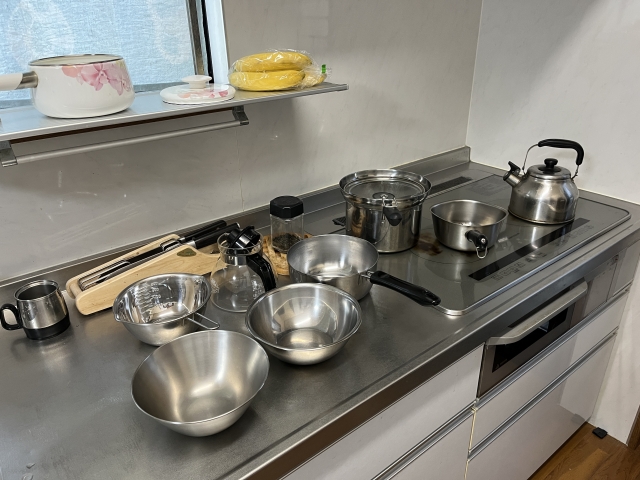 • 鍋・ゴムベラ・泡立て器などの調理道具はすぐ手に取れる場所にそろっているか