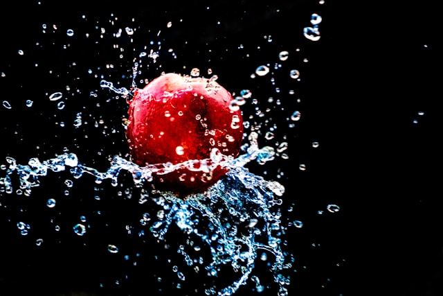 洗ったあとのりんごは、見た目以上に表面に水分が残りやすい状態です。