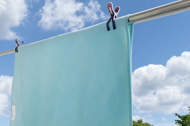特に複数枚を使っている場合は、一枚ずつ間隔をあけて干すのが安心です。