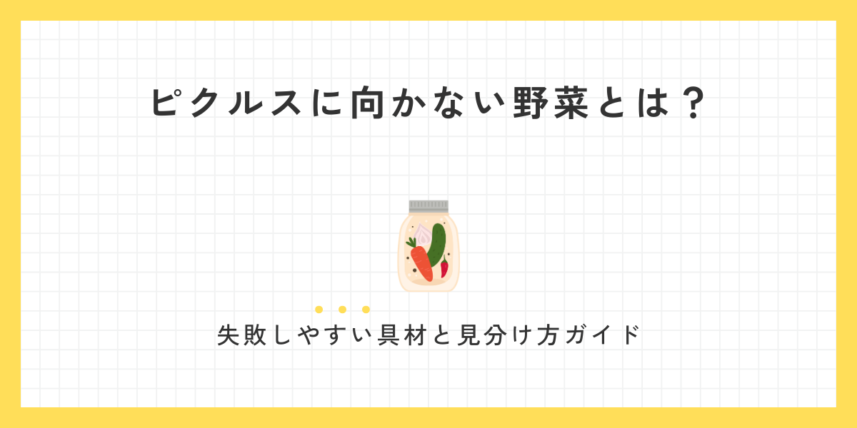 この記事では、ピクルスに向かない野菜の特徴や具体例、失敗しにくくするためのコツを、初心者の方にもわかりやすく解説します。
