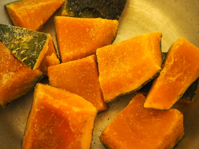 一方で、自分で冷凍したかぼちゃは、加熱の加減やカットの大きさを好みに合わせて調整できるのがメリットです。