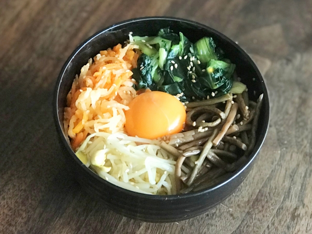 作り方はご飯の上に温かい野菜ナムルとごま油をかけるだけで、初心者でも簡単に作れます。